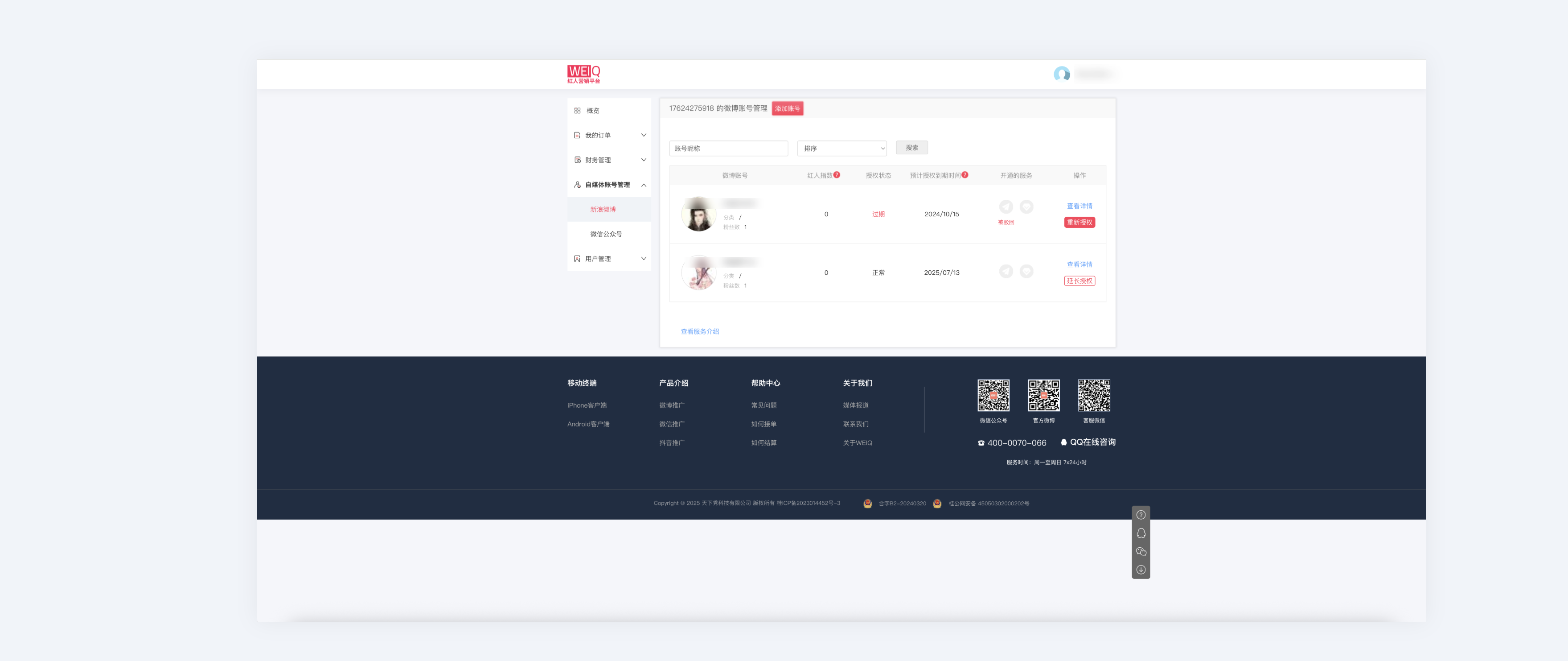 - 微博专属广告服务暂不支持自助开通,请联系客服进行入驻。